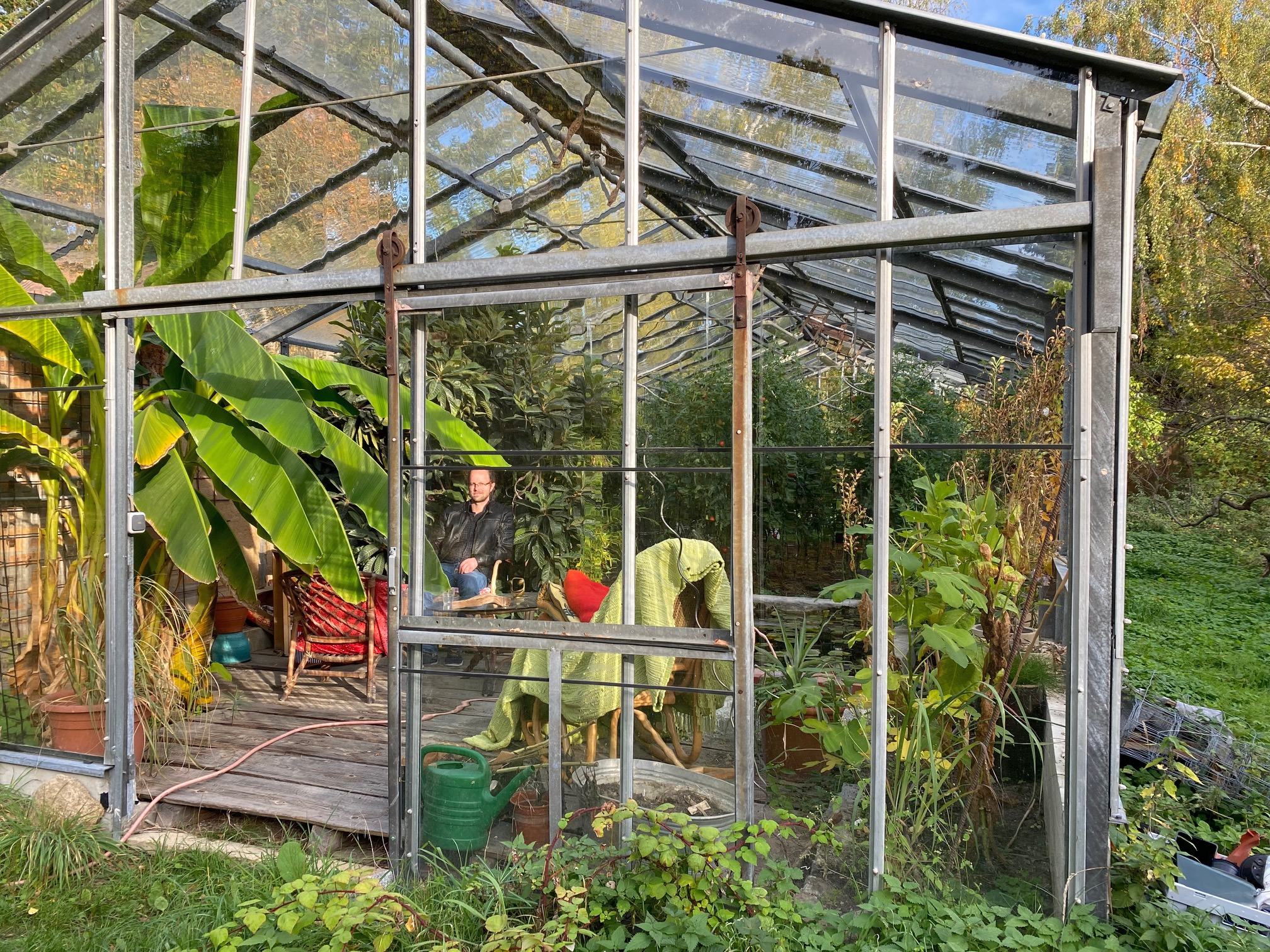 Ganz in der Nähe liegt das Glashaus. Es ist ein Gewächshaus, das zur Hälfte ganz bodenständig für den Anbau von Tomaten genutzt wird. Die andere ist eine Oase für Rückzug, Gespräche und Begegnung.